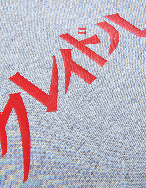 カタカナロゴをプリントしたフーディー。