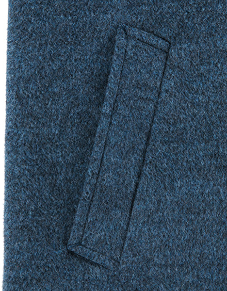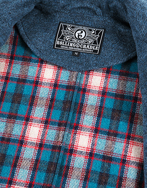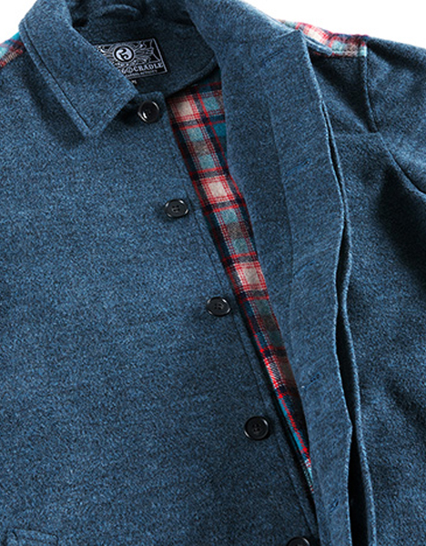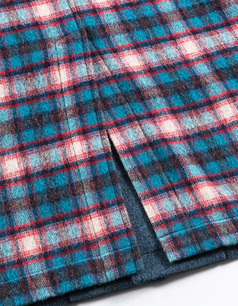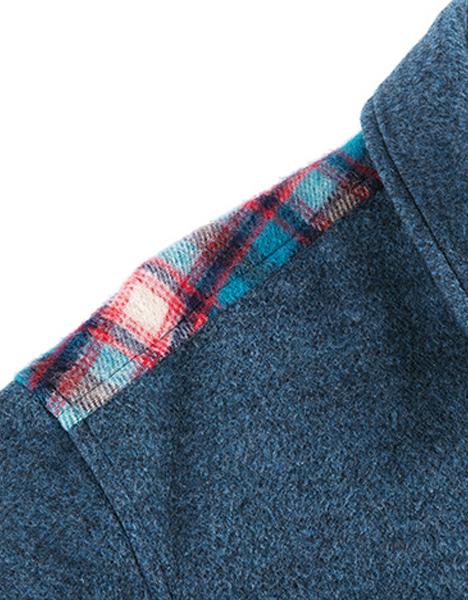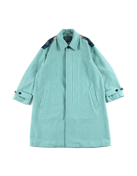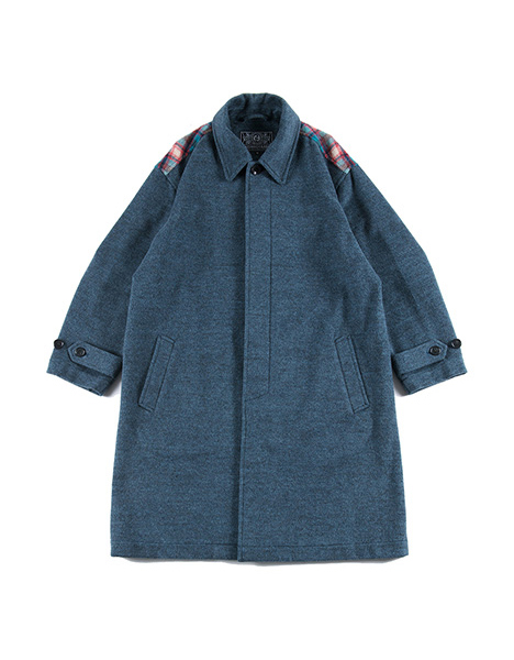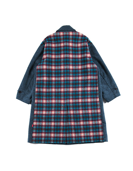 先染めメルトン生地を採用したロングコート。バックには起毛チェック生地を採用、前後で全く異なる印象となりインパクトある一着。