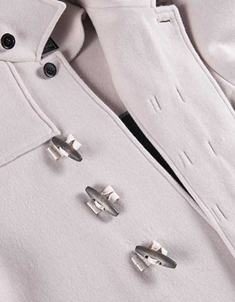 毛織物の一大産地である尾州地方で生産されているメイドインジャパンの素材"PECOLAMB"を採用したダッフルコート。暖かさと軽さが特長のSUPER110原料を使用。